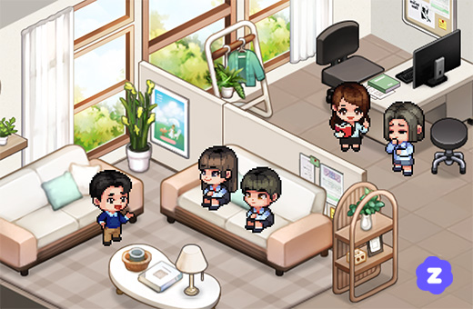 オブジェクトを自由に配置できるZEPでは、学校っぽさを意図的に減らした「居場所らしい空間」を作り込めます。机と黒板ではなく、ソファ・観葉植物・窓・カフェコーナーのような配置にすると、入ってきた子がほっとできる雰囲気が生まれます。room-Kが大事にする「そこにいていい感じ」を、空間デザインで表現するアプローチです。